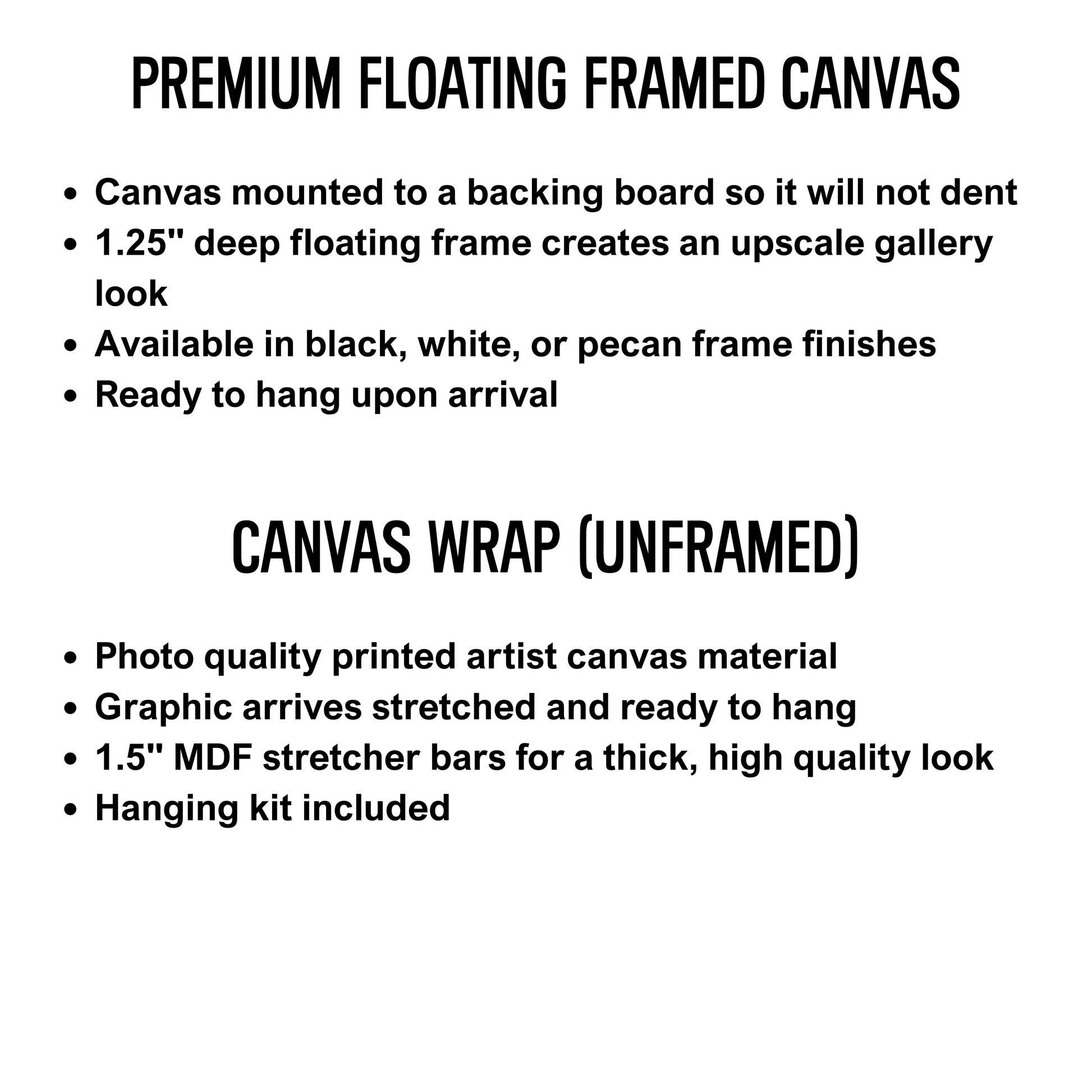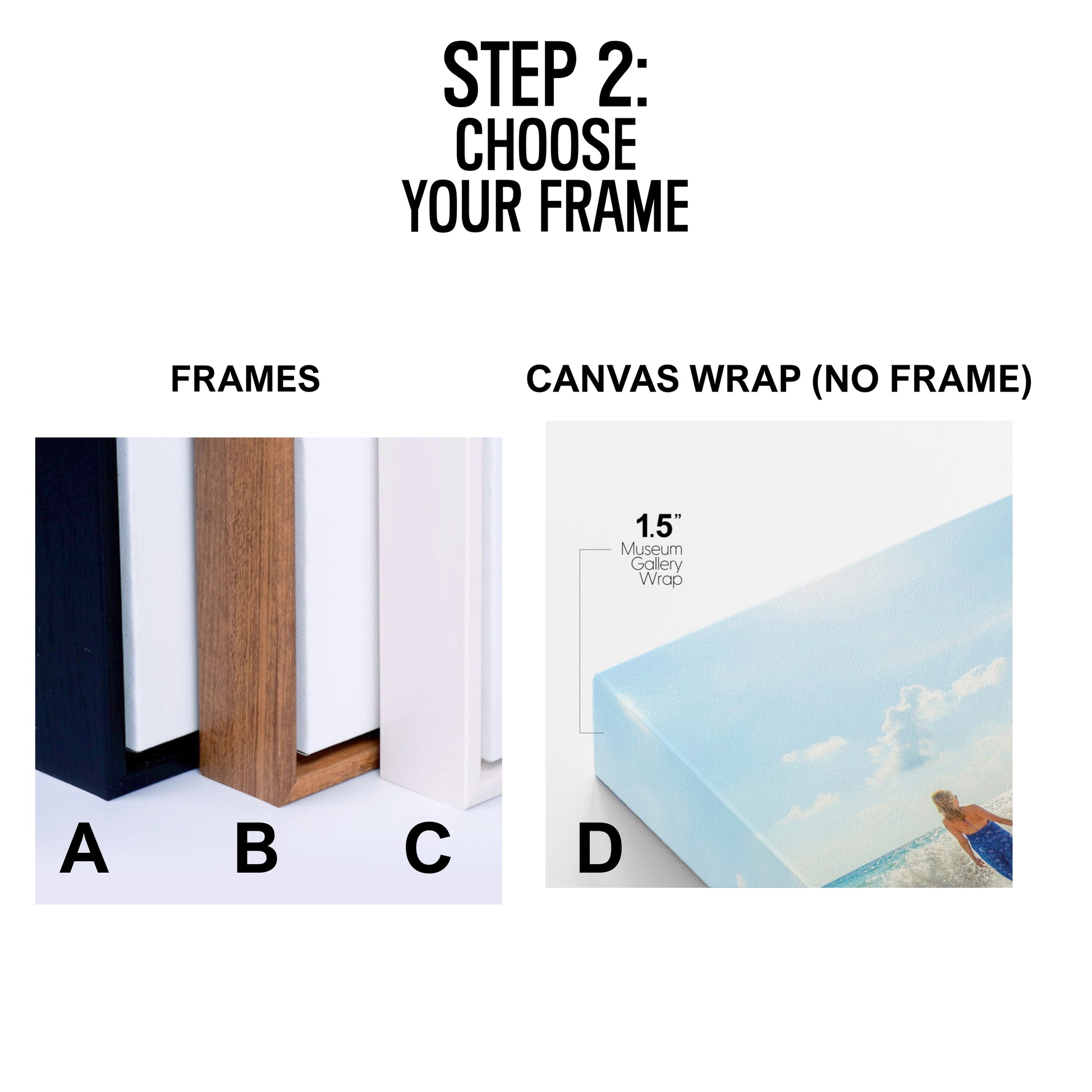 All designs are available as framed prints or canvas wraps and arrive ready to hang. You can choose from several size options below. Each size allows for a different number of photos, and I do my best to include every photo you send, depending on orientation. I will reach out about font type and color