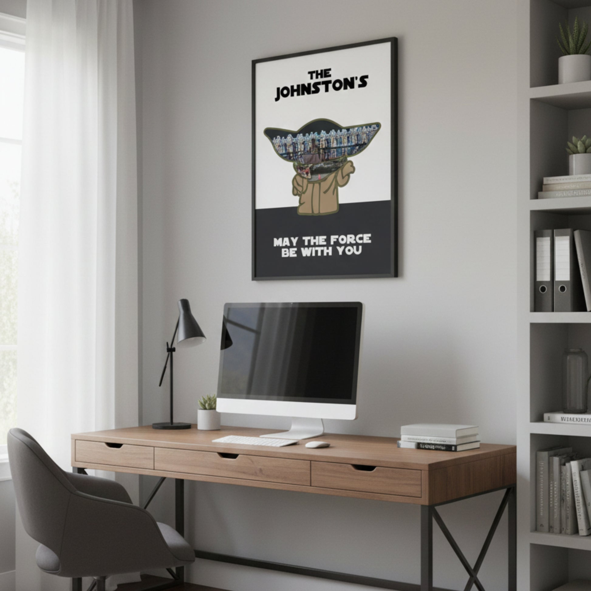 Bring the Force home with this custom Yoda Photo Collage, perfect for Star Wars fans and Disney vacation memories! Choose from Digital Download, Yoda in Space, or Yoda on White—each design features your personal photos beautifully blended into Yoda’s silhouette.